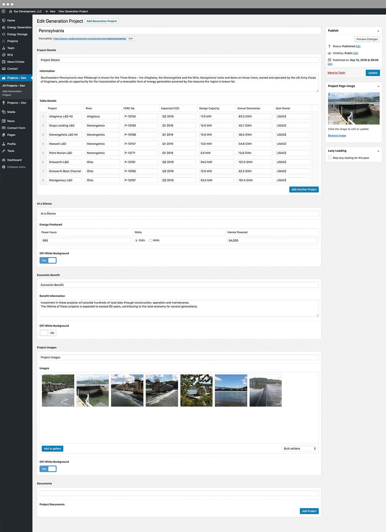 Rye Development LLC was looking for an updated look for their brand and website that was clean, modern and easy for the viewer to navigate. A custom CMS was developed to update all aspects of the site.