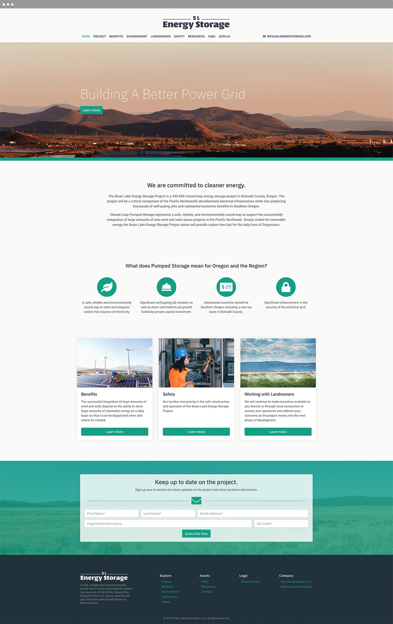 The Swan Lake Energy Storage project was recently granted a federal license for construction/operation in Southern Oregon and needed a website to inform the local community and interested parties on the basics and benefits of the project. The client wanted a site that was easy to use, navigate, understand and give the user a simple way to keep informed on the project going forward.